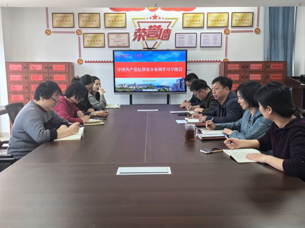 (廖娜)3月29日,教师工作部、人事处、国际交流与港澳台事务处党支部组织全体党员集中学习《中国共产党纪律处分条例》。支部书记黄小喜主持会议。