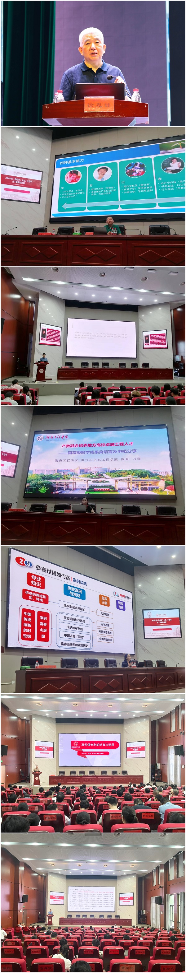 本次培训历时5天共10个单元,主要围绕高质量发展政策理解、人才培养模式创新设计、学科专业建设、一流课程建设、教学团队建设、教学改革推进、教学成果将培育等内容设置课程,旨在进一步提升我校基层教学组织负责人——系主任和教研室主任的专业能力和领导水平,充分发挥其在教师队伍建设和教育研究中的示范、引领和带头作用。培训邀请了来自西安交通大学、中南大学、南京师范大学、西南大学等高校的高水平专家以及知识产权、教学平台的行业专家担任主讲。西安交通大学教师教学发展中心主任徐忠锋以“数智赋能课程教学改革的现在和未来”为题,从在线教学资源建设与应用实践、AI赋能课程教学改革创新两方面阐述了数智时代课程教学改革的趋势和应对策略。西南大学创新创业学院、含弘学院党委书记、院长吴能表以“优化教学策略 深化培养改革”为题,阐述了新时代大学教师应有的教育理念、提高课堂教学效果的策略方法和开展教学改革的举措。南京师范大学教育科学学院院长王建华以“什么是高等教育高质量发展”为题,从高等教育发展观的澄清、高等教育自由发展观的建构和高等教育高质量发展的实现三个方面展开阐述。中南大学商学院副教授朱宁以“课程思政教学竞赛的备赛与体会”为题,从赛前、备赛、赛后三个维度,结合自身经历,讲述了如何准备教学竞赛、怎样提升课堂教学水平。湖南工程学院电气与信息工程学院院长万琴以地方高校卓越工程人才培养为例,分享了国家教学成果奖的申报心得和艰辛历程。湖南省知识产权局知识产权保护专家杨斌和湖南大学科技成果转化中心主任杨飞龙分别作了“高价值专利的培育与转化”和“高校知识产权管理与运营”为题的专题讲座。